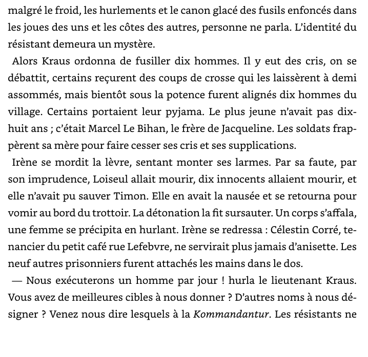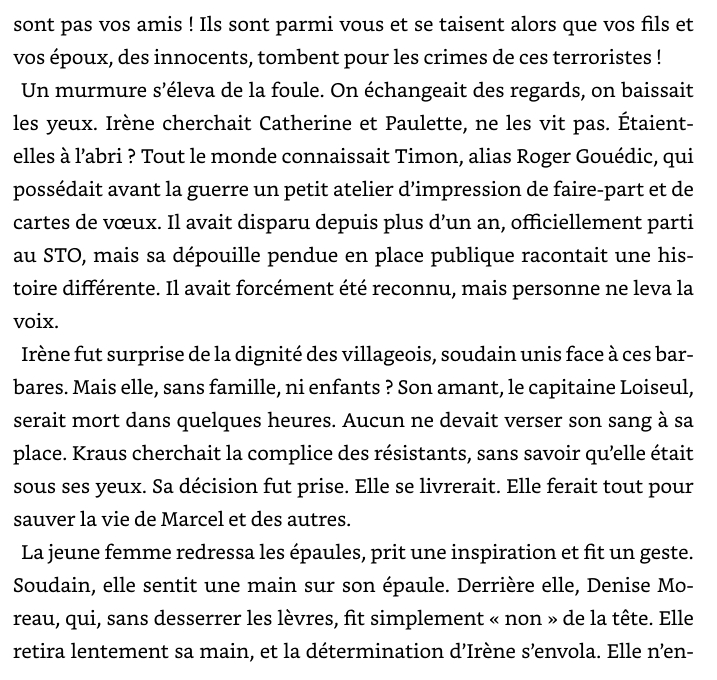 En ce début d'année 1944, la guerre fait rage en Bretagne. Dans le village où vit Irène, une jeune institutrice engagée dans la Résistance, les nazis sont plus déterminés que jamais. Résistants et sympathisants sont traqués et les représailles sont sanglantes. Pour la jeune femme, la situation est devenue désespérée. Tombée amoureuse du capitaine allemand qu'on lui avait demandé d'espionner, elle est accusée de trahison par la Résistance et montrée du doigt comme collabo par la population. Pire encore, à cause d'elle, l'homme qu'elle aime, cet ennemi qu'elle était censée détester, se trouve désormais entre la vie et la mort. Pourra-t-il lui pardonner sa trahison ? Que peuvent espérer les amants interdits, alors que le monde brûle autour d'eux ?